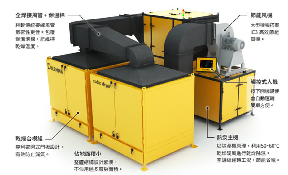 Thiết kế thân máy nhỏ gọn gồm máy chủ và buồng sấy khô. Không cần phụ thuộc quá nhiều vào các ống kết nối hàn. Rút ngắn quá trình sấy và tiết kiệm năng lượng đầu ra.